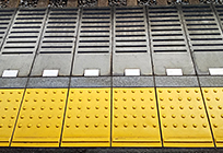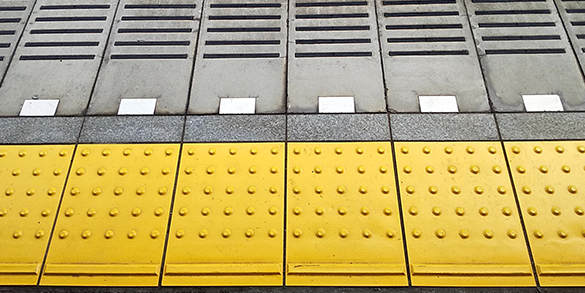 ところで、駅のホームで見る黄色い点字ブロックはたいがいがホーム端にあり、駅員が「黄色い線の内側にお下がりください」という場合はこの点字ブロックを意味していることが多い。なぜそんな危険な場所に視覚障害者を通すのか、と怒るなかれ。これはその上を通るためのものではない。