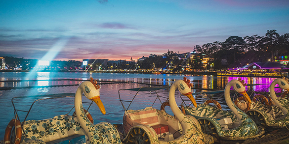 ダラットの象徴は街の中心にあるスアンフーン湖です。日中は湖岸のフランス式建築や博物館などの景観が美しく、夜にはカフェやレストランの光が湖の水面に反射したり、また高山特有の霧がかかったりと様々な幻想的な表情を楽しめます。