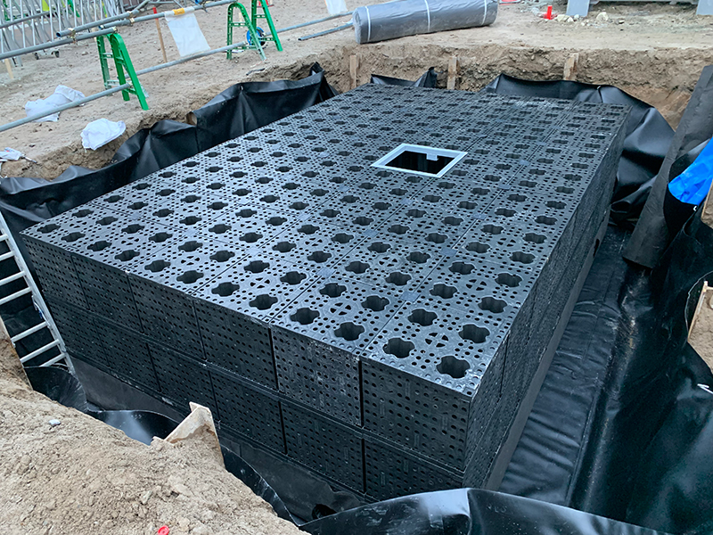 雨水利用施設として設置するプラスチック製雨水浸透貯留槽です。