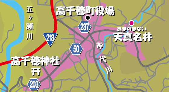 天照大神(あまてらすおおみかみ)の孫である瓊瓊杵尊(ににぎのみこと)が降臨し「水の種」を落としたとされる湧水「天真名井(あめのまない)」。この日本神話ゆかりの地を抱えるのが宮崎県北東端に位置する高千穂町です。